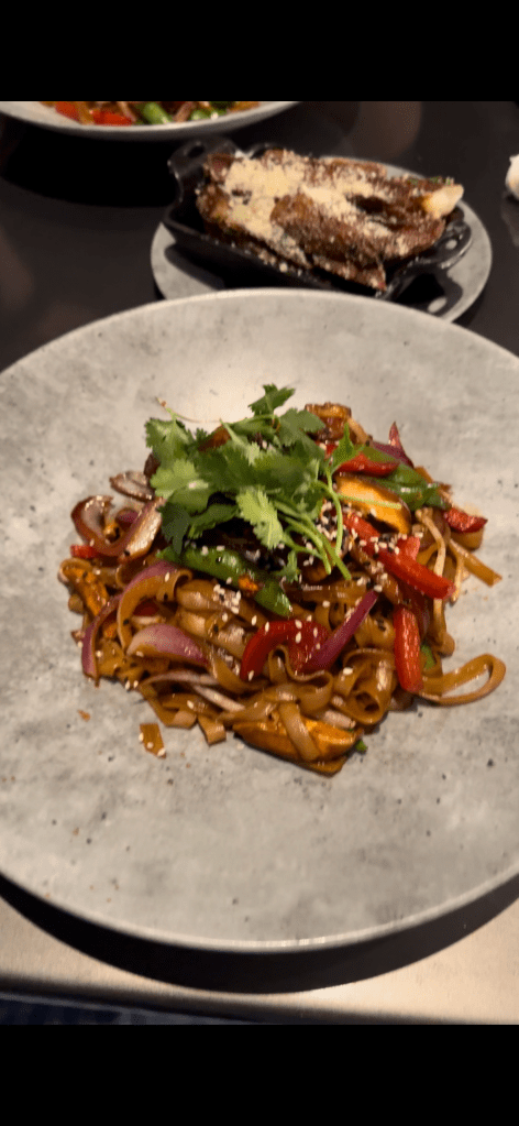 The menu at Space 220 features a variety of modern American cuisine with a space-inspired twist. Dishes range from appetisers like Blue Moon Cauliflower and Starry Calamari to main courses such as Centauri Burger and Space Crab Mac and Cheese. There are also vegetarian and vegan options available, which is what we got. The food is generally well-prepared and creatively presented, adding to the overall experience.